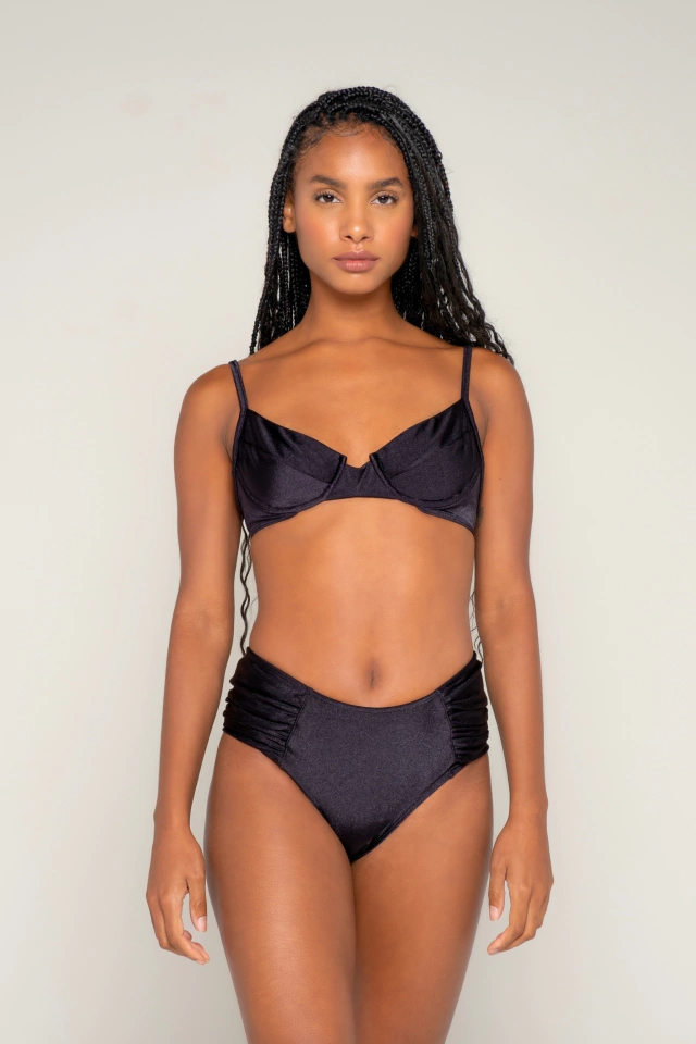 Soutien new cap cire preto e Calcinha newq.drapeado cire preto